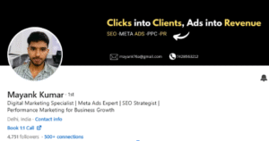 What sets Mayank apart is his ability to combine the power of paid ads with the strength of organic SEO. He believes that digital marketing is not just about running campaigns but about building a complete ecosystem for growth. Paid ads give businesses the quick push they need, while organic traffic ensures sustainability and trust.